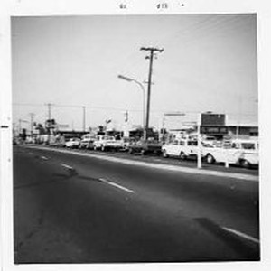 Street scene on El Camino Avenue showing road improvements. Gas stations and other businesses line the street.