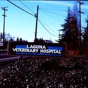 Slides, color transparency: The sign of the Laguna Veterinary Hospital in Sebastopol in 1977.