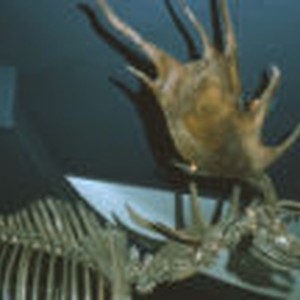Side view of a giant deer skeleton at the Smithsonian's National Museum of Natural History.