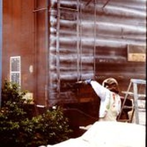 Slide, color Ektachrome transparency: Pacific Fruit Express boxcar being refurbished and sand blasted for the West County Museum at 261 S. Main Street in Sebastopol, 1995. R.C Hall Photography 1076 Waverly Way, Sebastopol