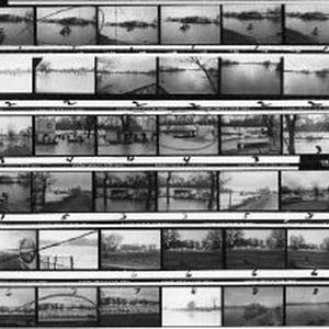 36 postage-stamp sized photos of several locations along the Sacramento River showing flooding conditions.