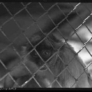 Zoo - Monkey looking at cameraman through chain-link fence.