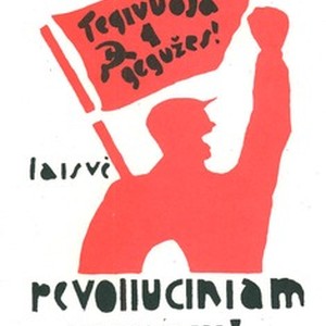 A poster in Lithuanian dedicated to the May Day (labor holiday). Captions read, "Tegivuoja [sic] 1 gegužės! Laisvė. Revoliuciniam veikimuri", meaning "Long live May the 1st. Freedom. [Revolution movement]". [Description English/roman)]
