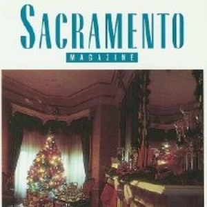 Interior view of Christmas decorations at the Governor's Mansion. This card produced as a promotion for Sacramento Magazine.