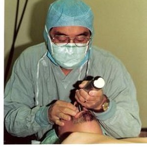 Colored photo- unidentified physician at work 1978. Palm Drive Hospital.