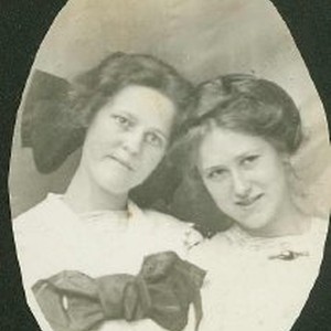 Left to right. Myrtle Hausman and Margaret Buell oval postcard portrait.