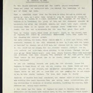 Beatrice S. Lott, Cape Palmas, Liberia, west coast Africa, letter, [s.d.], to "saints scattered abroad and the Lord's people everywhere". [Description English/roman)]