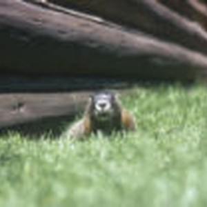 A hoary marmot "whistling" in the grass next to Jenny Lake Lodge.