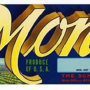 Crate label. Mona Brand Girdled Coachella Valley Grapes, The Schuman Co., Main office--Beverly Hills Calif. Small orchard scene with mountain in background.