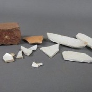 One bag of ceramic bulk comprised primarily of white ceramic potsherds, plus one red brick fragment.