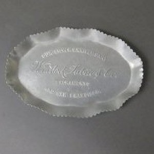 Pin tray, oval aluminum with scallped edge. Embossed lettering: "Our Silver Anniversary, Weinstock, Lubin & Co. Sacramento and San Francisco".