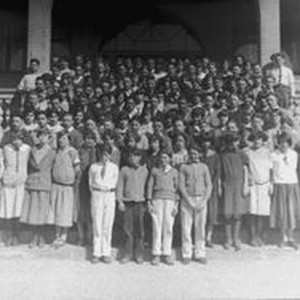 Photo--black and white, from Borba 8" x 10" celluloid negative: The 1925 Analy Union High School freshmen class picture taken for the yearbook, Azalea. About 168 freshmen enrolled. Photo taken on the steps of Analy.