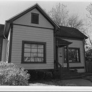 Photo, black and white: Sebastopol house at 446 Petaluma Avenue a Queen Anne built in 1900 in the Pitt Addition. House photographed in 1993 by Evelyn McClure for her book "Sebastopol, California : History, Homes and People."