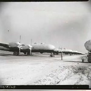 Cocooning B-29 Superforts at McClellan Field. Long shot of several B-29s on flight line.