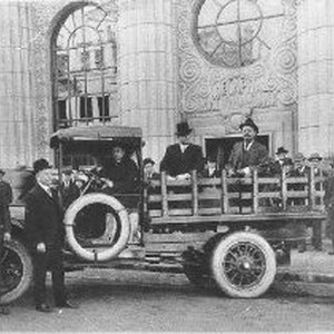 View of Front of Capital National Bank Building with bank president Alden Anderson posing with horse and carriage. Part of "Days of 49" celebration.