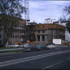 Views of redevelopment sites, renderings, and table models for the proposed Redevelopment District. Includes maps and site plans. This view is of the California State Department of Finance building.