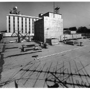 Exterior view of the Merrium Apartments before demolition up on the roof of the building