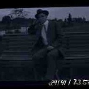 Photogrpahic study of an unidentified young man sitting on a park bench with small river or stream in background.