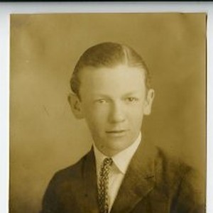 Portrait of James Benton Tulley as he graduates from grammar school in Roseville, California. Portrait is inscribed on the front, "Love Benton"