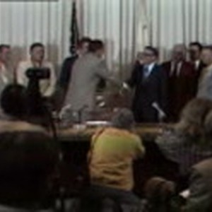 Footage of Reagan signing a bill concerning occupational health and safety. He says it will retain OSHA protections in state hands; it is a real getting together of labor and management. Produced by JRH and Associates, Inc.Additional Descriptive Notes: Reagan speaks (00:35), Reagan signs (01:00), Reagan presents souvenir pens and bills (01:54), Reagan gets up from desk, formal session ends, views of people mixing (04:03), Reagan seated at desk for special photographs (05:37), Reagan makes "compulsive doodler" comment (05:46), Reagan remembers his time with Screen Actors Guild negotiating with producers in Rexall building (06:45), Reagan posed at desk (07:10), Reagan stands to leave and shakes hands (07:45)