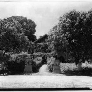 View of house engulfed by bushes and trees. Located on "Stoccato Ranch" owned by "Francesco Forzano."