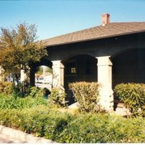 Photo--Color photo--South side of West County Museum building, about 1990. This building was formerly the P&SR depot station. Built in 1917 the architect was Brainard Jones of Petaluma.