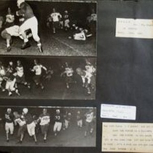 Photo--black and white: Analy High School Tigers football team of fall 1950. Analy Tigers vs Mt. Diablo at Concord, September 22, 1950. Caption to third photo: "New 1950 Rules (I guess) say you can only have ONE FINGER in a fellow's EYE and ONE FINGER in his mouth all at the same time (if you have TWO FINGERS in each--it's a foul and you get penalized 11 2/3 yards. See Jack Totman #5."