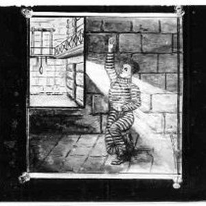 Drawing of prisoner in striped suit visualizing gallows.