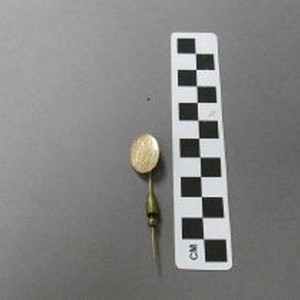 Stick pin, 10k gold, oval with initials engraved "E.F. Shelton", c.1900s