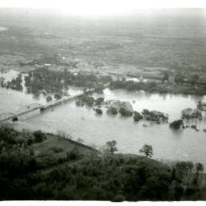Print, 4" x 5". Depicts flooding along the American River in North Sacramento/Gardenland. Aerial shot.