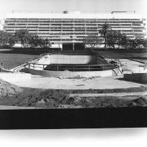 Experimental energy office buildings under construction by the Calif. State Dept. of General Services and under the supervision of the Office of the State Architect (at back). View includes a subterranian office building in foreground. It will eventually have landscaping on roof.