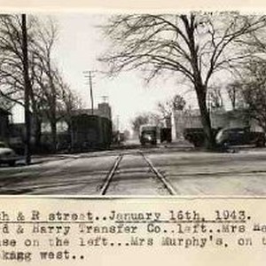 Typed on binder page "13th & R street..January 16th, 1943. Ford & Harry Transfer Co..left..Mrs. Healey's house on the left..Mrs. Murphy's on the right. Looking West." Ford & Harry Transfer & Storage Co. is listed in the City Directory as being at 1220 R street.