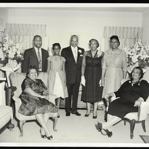 Photograph of a group of 7 unidentified people (4 women, 2 men, 1 girl), [s.d.]. [Description English/roman)]