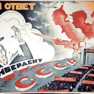 A poster expressing the reaction of the Soviet government to an official note issued by the British government and signed by the British Foreign Minister Joseph Austen Chamberlain. Caption reads, "Nash otvet Chemberlenu / Наш ответ Чемберлену", meaning, "Our response to Chamberlain". [Description English/roman)]