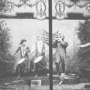 Weinstock Lubin window display designed by Chas. W. Morton. Titled: "The Spirit of '76 and of 1917." Signs held by Uncle Sam and Lady Liberty encourage enlisting for the sake of "democracy and humanity."
