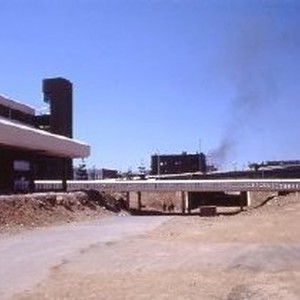 Views of the Holiday Inn Hotel downtown under construction at 4th and 5th Streets on K Street. This view shows the bridge to the Fratt Building in Old Sacramento