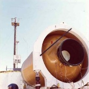 "MX 2nd Stage motor being readied for static test at AGC Sacto."