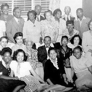 Family and friends casually gathered for photo. Clarissa Hundley Wildy and Lucy Jane Ray Hundley second from left in second row.