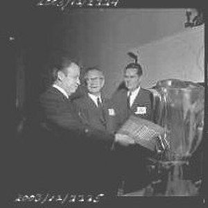 Group - Jesse Unruh, left, and two others examining documents on board.