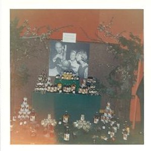 Photo, color: Hallberg Apple Ranch display at the Gravenstein Apple Fair in 1964 with enlarged photo of Donna Hallberg (middle) and Kathleen Hallberg (right) with Gene Bologna, Sonoma County Sealer of Weights & Measures, weighing the large Hallberg apple. Enlarged photo taken November 22, 1963. Rome apple from Hallberg Orchards, Sebastopol, CA. Weight 2 lbs, 3 oz, circumference 17 5/8." Largest apple in the world at the time.