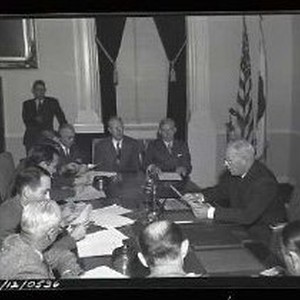 Governor Earl Warren presides at meeting. ca.1950