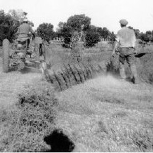 "This is a haymower attached to a tractor, with some kind of a side-delivery rake attached, making windrows as it mowed. Jones was proud of his innovations. This device was unique in Natomas."