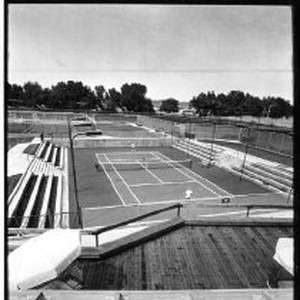 "Gold River Racquet Club features a sunken stadium court with natural seating for 500 and additional seating for 2,500"