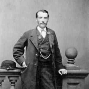 Print, brown-toned. 2.25" x 3.75"; mounted 2.5" x 4". Portrait of unidentified man standing against railing. Not dated.