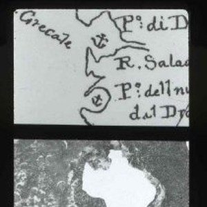 Slide of drawing of old map of Bolinas Bay and part of "Drake's Plate"