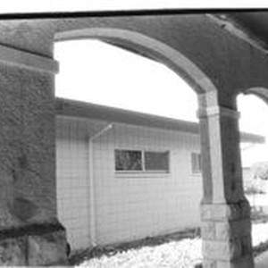 Photo--black and white: photo--The arches on the north side of the West County Museum which originally was the Sebastopol depot station of the P&SR electic railroad. about 1990s