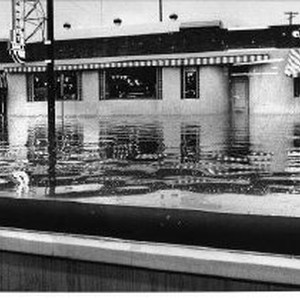 The photo caption printed in the Sacramento Bee on February 28, 1973 states: "In the photo . . . the water line can be seen against the sotre's front window in a photo looking across the street yesterday afternoon." The restaurant shown is the Rosemont Grill at Folsom Blvd and Seville Way.