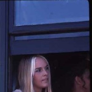 Woman sitting at an open window looking down on a celebration in Old Sacramento. Possibly on the 4th of July 1976.