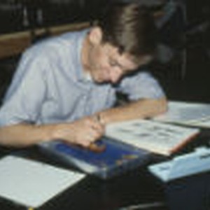Paul Kohnen dissecting a crustacean.