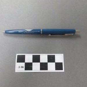 One ballpoint pen, metal, blue and silver-toned, "Federal Land Bank Association of Sacramento 1851 Heritage Lane, Suite 101, Sacramento, California 95825 (916) 920-2340"